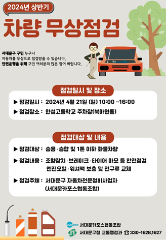(1) 서대문구 2024년 상반기 차량 무상점검 포스터