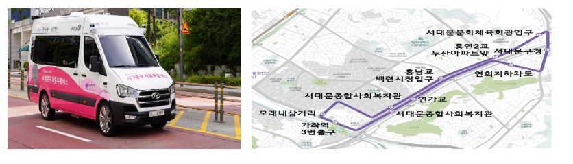 차량 2대가 서대문구청에서 가좌역 3번 출구까지 약 6km 구간을 하루 총 14회 순환하며 누구나 무료로 이용할 수 있다.