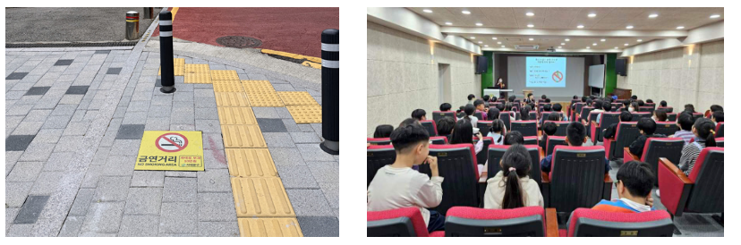 구는 청소년 간접흡연 피해 예방을 위해 올해 들어 초중고교 주변으로 금연구역 10곳을 확대 지정하고 보도에 금연구역 안내표지를 설치했으며 어린이와 청소년 대상 금연 교육을 적극 실시한 점이 높은 평가를 받았다.